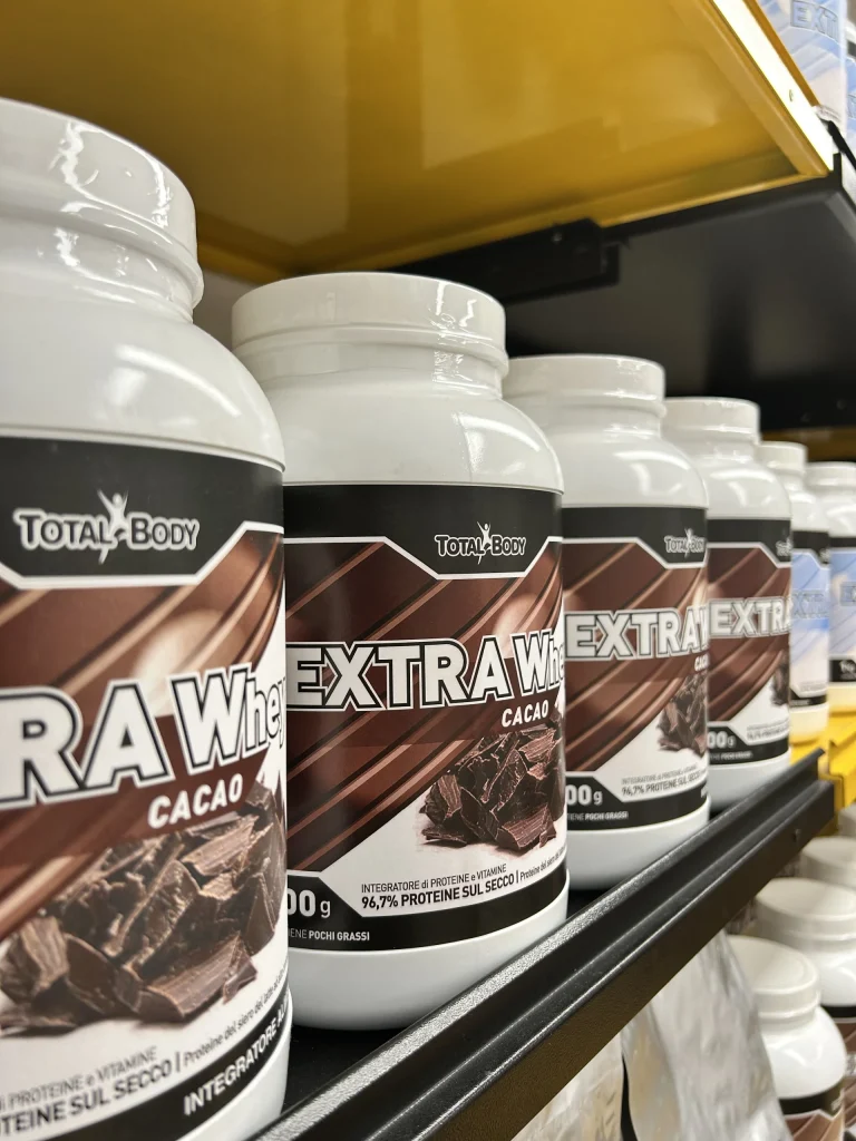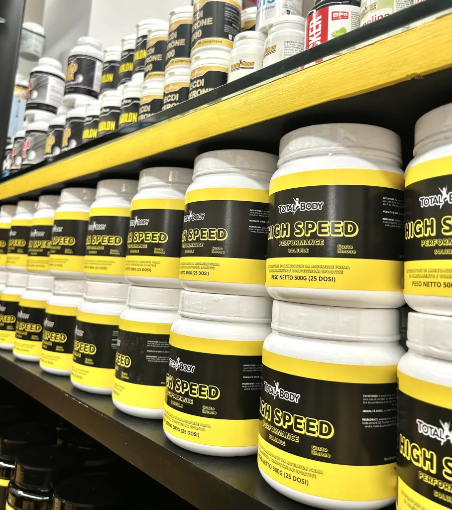 Integratori alimentari specifici per lo sport ricchi di proteine o vitaminici e aminoacidi, per la salute e anti-age.